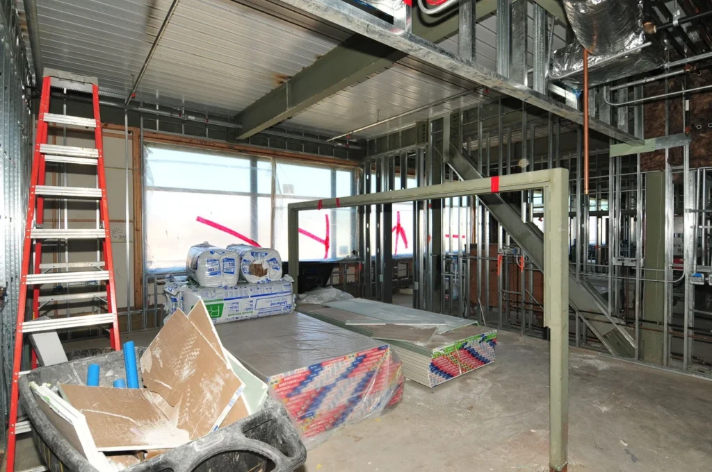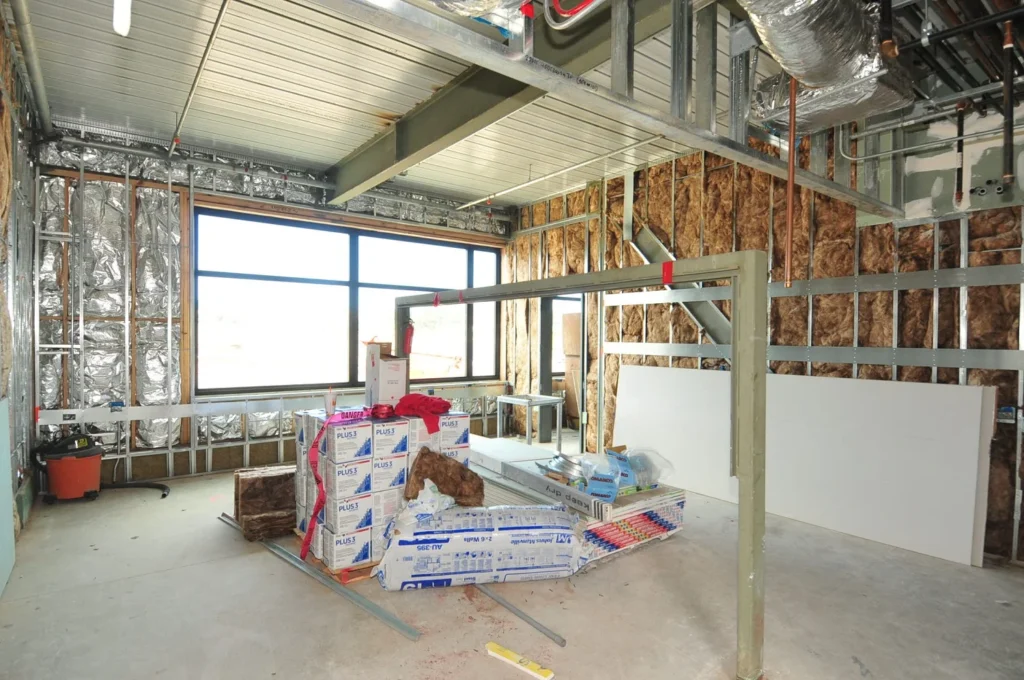 Exterior and interior construction progression photography