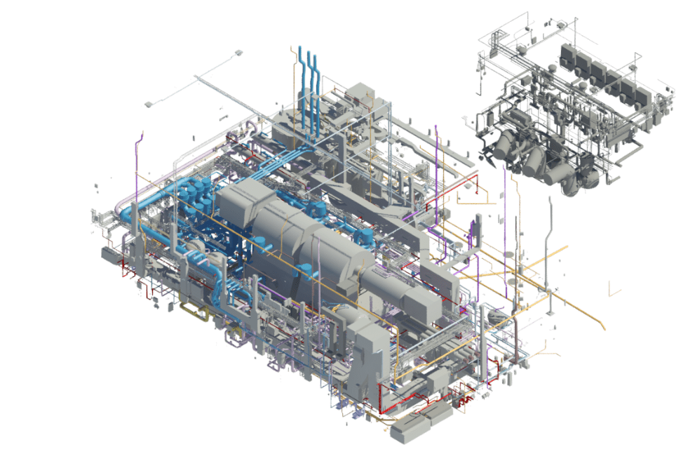 Additionally, our Scan to BIM services are employed to convert point cloud data from laser scans into intelligent 3D models. This is particularly crucial for modeling subsystems across key areas of the plant, including the office building, turbine building, and heater units, ensuring seamless integration and functionality across all components.