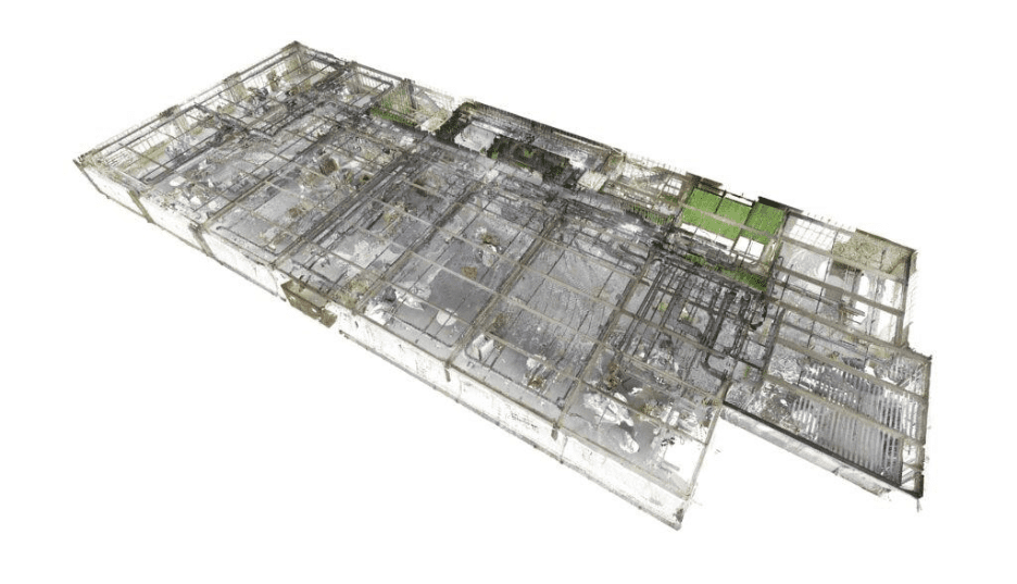 Multivista scanning professionals capture site conditions using Leica Geosystems 3D laser scanners. This point cloud represents the first step in Hexagon’s scan-to-plan workflow.